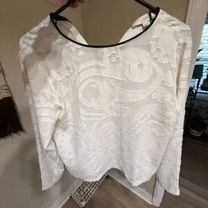 Elegant white top with intricate texture. Ideal for chic occasions.