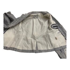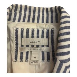 J Crew Blue and White Striped Linen Schoolboy Blazer