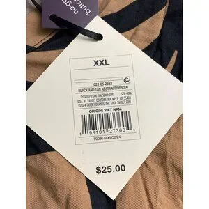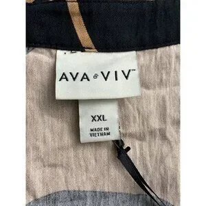 This Ava & Viv shirt, in a striking black and tan abstract pattern, offers a professional yet trendy look. The no-gap button front ensures a clean, polished appearance, suitable for diverse occasions. Made in Vietnam, this shirt provides both comfort and style for the modern wardrobe.