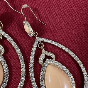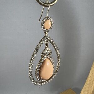 Gold Tone Peach Rhinestone Dangle Earrings Teardrop Ornate Fashion Statement