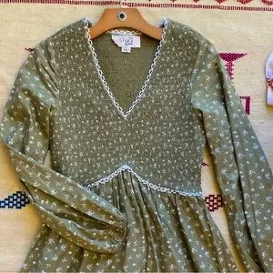 The Stockplace Green Floral Cottage Willow Midi Dress