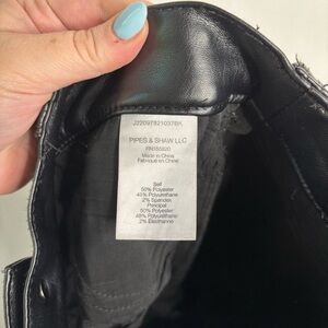 “The Beverly is a VB favorite, now updated in sleek vegan leather. Everything else you love about the style remains the same—from the high-rise to the skinny-flare silhouette that gives you legs for days. Front patch pockets and our signature V-shaped belt loop in the back complete the look. Pair these vegan leather pants with a tee, a dickey jacket and heels for a new take on the classic VB look.”
