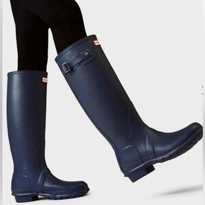Hunter Original Tall Matte Rain Boots, Navy Blue, Women's Size 8, NIB