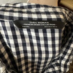 Zara Denim Collection Gingham Black and White Flowy Collared Shirt