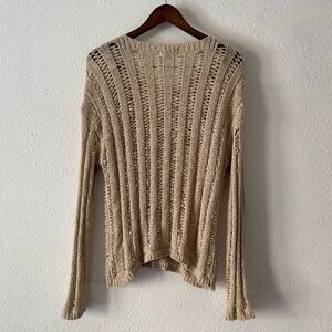 sweet wanderer crochet knit top xl cream tan neutral boho bohemian cottagecore festival beach vacation layering cozy soft relaxed fit oversized flowy hippie hippie chic gypsy fairycore coastal coastal cowgirl bohemian rhapsody westerncore knitwear sweatshirt long sleeve lightweight pullover crewneck spring summer fall autumn fashion trending aesthetic style unique indie vintage inspired knit top