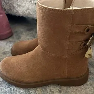 Charming UGG boots for kids with sweet starry bow accents. Cozy and stylish for cooler weather. These has rubber soles so also great for more traction :) we only wore these once and they are in excellent condition.