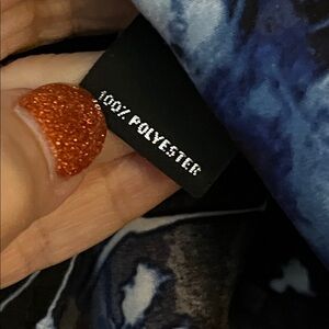 Cool lightweight feminine top with a striking blue, black & white floral design. V-neckline w/ single pleat below for wearing ease, long mini-bell sleeves, slight hi-lo hemline w/curved sides & side slits. NWT. PTP - 24”. Length - 29.5”