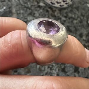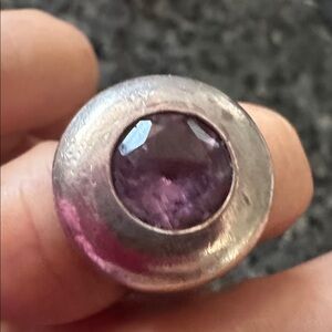 Elegant silver ring featuring a stunning purple gemstone. Perfect for adding a touch of sophistication to any outfit.