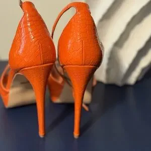 Step out in style with these vibrant orange peep-toe heels. Perfect for any occasion, these shoes add a pop of color to your outfit.