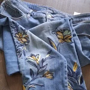 Chico's Blue Jeans with Yellow Floral Embroidery