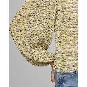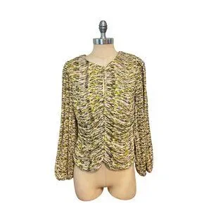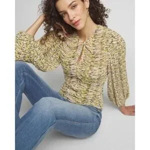 White House Black Market Long Sleeve Pleated Keyhole Blouse 8 10