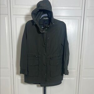 J.Crew Womens Olive Green Full Zip Snap Drawstring Hooded Cargo Utility Jacket S