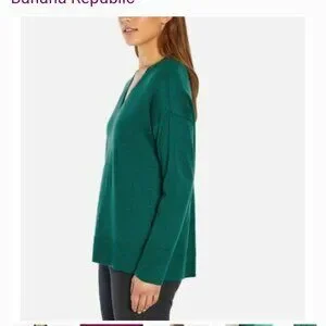 Banana Republic Women's V-Neck Sweater Size Small Color is Forest Green, 100% Merino Wool.