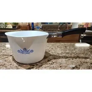 Add a vintage touch to your kitchen with this CorningWare Blue Cornflower 2 Qt Sauce Maker. The round shape and blue floral design make it a beautiful addition to your dinnerware collection. With a capacity of 2 quarts, it is perfect for making sauces and soups.