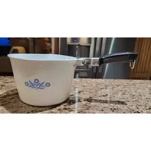 Vintage Corning Ware Blue Cornflower 2 Qt Sauce Maker with Handle Rare Discont.