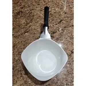 This original piece from the United States has a printed backstamp and features a handle for ease of use. The sauce maker is made of pyroceram material and has a production technique of fused glass. It is a discontinued piece, making it a unique and rare find for collectors. Ideal for those who love floral-themed kitchenware, this sauce maker is a must-have for any vintage cookware enthusiast.