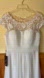 Charming white chiffon dress with lace cap sleeves. Ideal for weddings. Flows elegantly. Fully lined, zips up back. US Size 10. NWT.