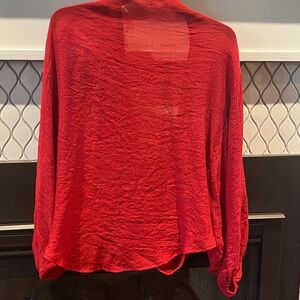 Chic red blouse with a stylish drape design. Perfect for elevating any outfit.