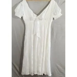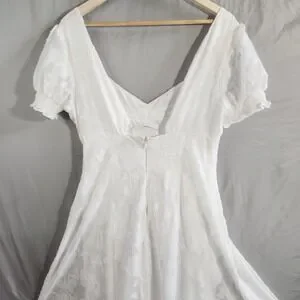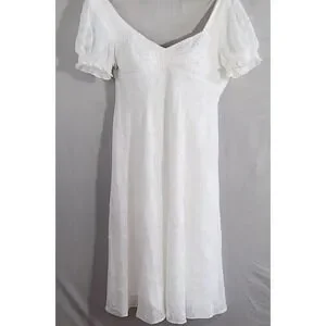 Adrianna Papell Dress Lacy Ivory Size 12 Lined Boho Embroidered Overlay Midi