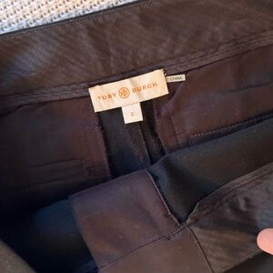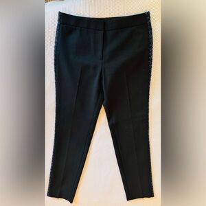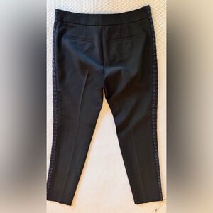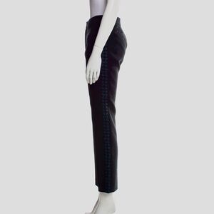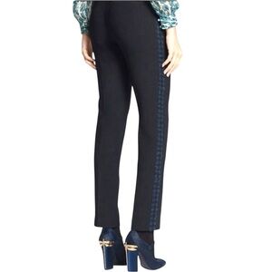 TORY BURCH Tobie Black Trousers Straight Leg Pants Blue Wool Tweed Side Stripe