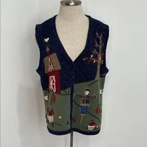 CJ Banks Women’s Size 1X Sweater Vest Hand Embroidered Fall Autumn Pumpkin