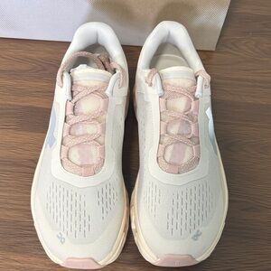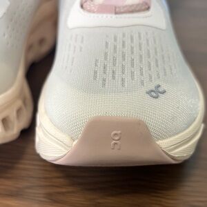 Stylish On Running sneakers in cream and pink. Perfect for casual wear.