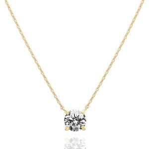 HIGHLIGHTS: A 7.3mm cubic zirconia crystal is prong-set in a 14K yellow gold-plated setting to complete this small pendant. It is 18" in length with a 2" extender. This jewelry for women will comfortably fit all neck sizes.