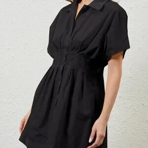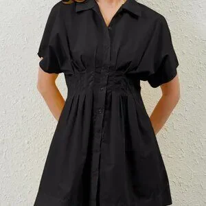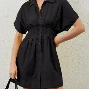 Women’s Cotton Pleated Button-Front Shirt Dress Mini Casual Summer