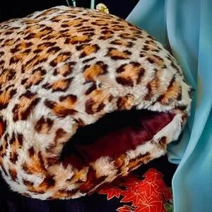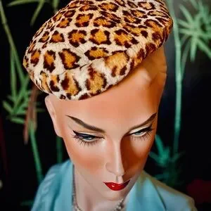 Hat has 2 attached combs. In good vintage condition with minor signs of wear. Possibly rabbit fur painted to look like leopard. 🐆