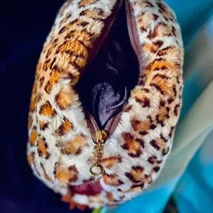 Vintage fur animal print muff and matching hat. Muff is soft and plushy with satin space for your hands and a zippered compartment.