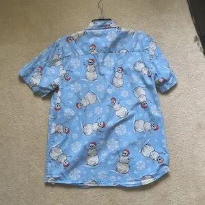 Add a whimsical touch to your casual wardrobe with the VSTR Light Blue Snowman Print Men's Shirt. Perfect for festive gatherings and relaxed outings.