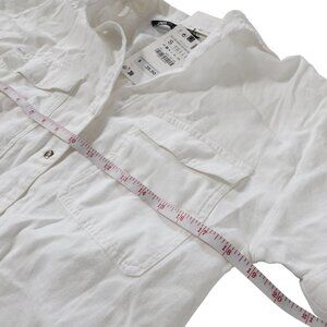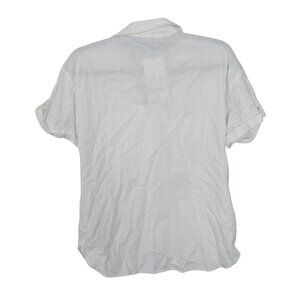 Zara White Button Down Short Sleeve Top SZ S Gold Buttons Front Pockets.