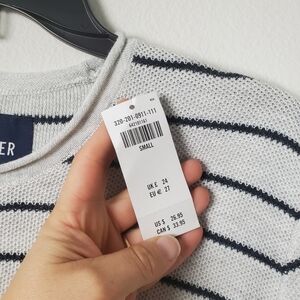 NEW Hollister Men's Cream White and Navy Striped Knit Shirt Size Small