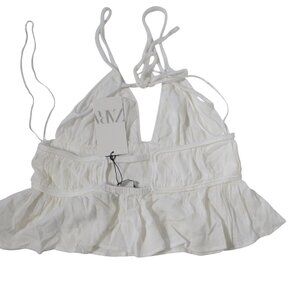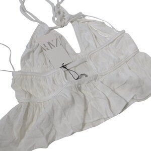 NWT Zara White Sleeveless Tank Top Strappy Tie Back Flare SZ M