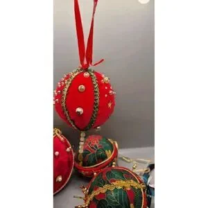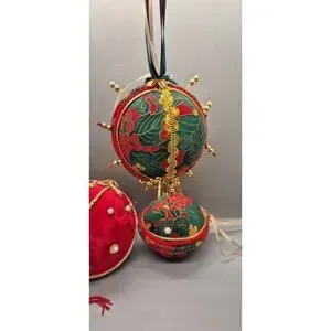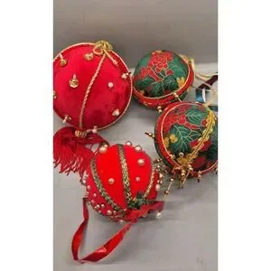 Lot of 4 Vintage Handmade Push Pin Beaded Ball Christmas Tree Ornaments