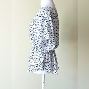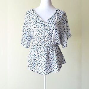 Sienna Sky Blue and White Floral V- Neck Short Sleeve Blouse Size Medium EUC