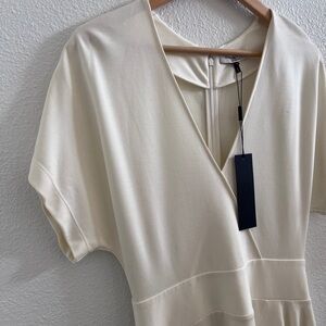 Halston Heritage Size 0 XXS Drop Waist Ponte Cream Knit Preppy Tier Short Dress
