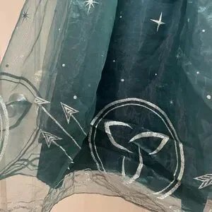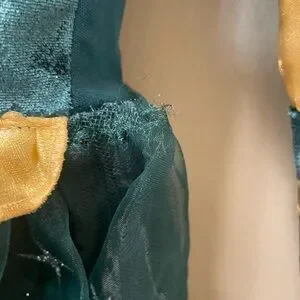 There is a hole on the tulle near the inseam as pictured. May be mended. No stains, smoke free and pet free. Measurements were taken with garment laying flat and are approximate. Please refer to photos to verify condition.
