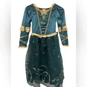Disney Store Dress Merida Brave Pixar Tulle Ruffled Hem Dress Up Costume 7/8 Kid