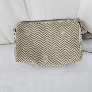 Vintage Mark Cross Cream & Tan Zip Top Shoulder Bag