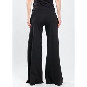 - Description: Meet the Ripley Rader Black Ponte Knit Wide Leg Pants, expertly crafted for both comfort and sophistication. These women's solid black pants boast a high-waisted fit and relaxed, wide-leg style, made from a luxurious viscose blend to create a sleek and flattering silhouette. Designed with a pull-on closure, they offer effortless elegance for any occasion, be it work, travel, or a dinner party. Model is wearing a size 2, featuring a 28" inseam, providing ample length for a chic finish with heels.