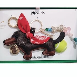 NWT ⚜️🤎⚜️ PIPER K Adorable Dachshund Doggie Key Chain Bag Charm