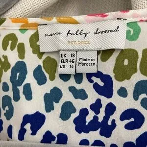 Great condition. Worn only once, definitely fits a range of sizes since it a ‘wrap waist’. I would say fits sizes 10-14. Leg slit goes to the top, wrap is adjustable for the leg slit.