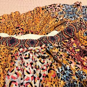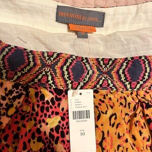 Bold animal print with a mix of orange and purple. Flowy and stylish. Perfect for a standout look. Fully lined. I purchased this new from Anthropologie. It has been tried on but not worn outside offers welcome!