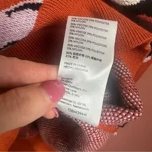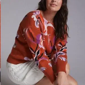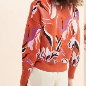 Stylish orange knit sweater by Maeve. Features white accents. Perfect for cozy days.