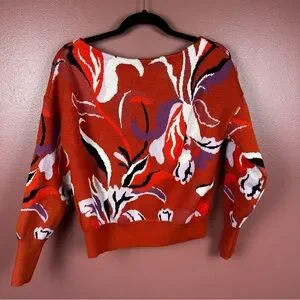 Maeve Boat Neck Orange and White Knit Sweater Size XS