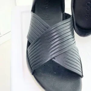 Ecco Sz 39 or sz 8 Sandals Gorgeous Neural Black Leather Sandals. Real Leather In excellent condition. NWOT Such quality and the neural color goes with every color outfit. These are the expensive Ecco sandals Flats that are so comfortable NWOT