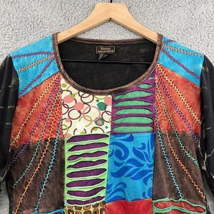 Rising International Top Medium Patchwork 3/4 Sleeve Shirt Bleached Colorful