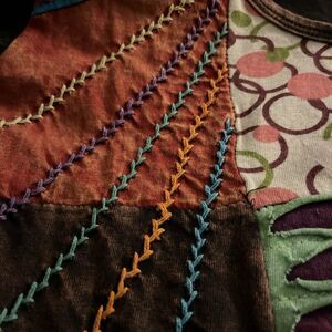 Rising International Top Medium Patchwork Bleached Brown Hippie Boho Fairy Shirt