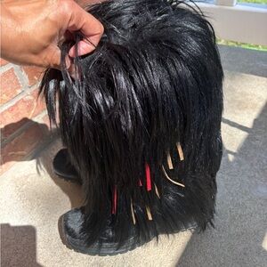 vintage Pajar boots, made in Italy. Known for their high-quality craftsmanship, these boots feature genuine shearling lining for exceptional warmth, long shaggy fur exterior, and durable rubber soles designed for grip and comfort. A rare and eye-catching pair that combines fashion with function.